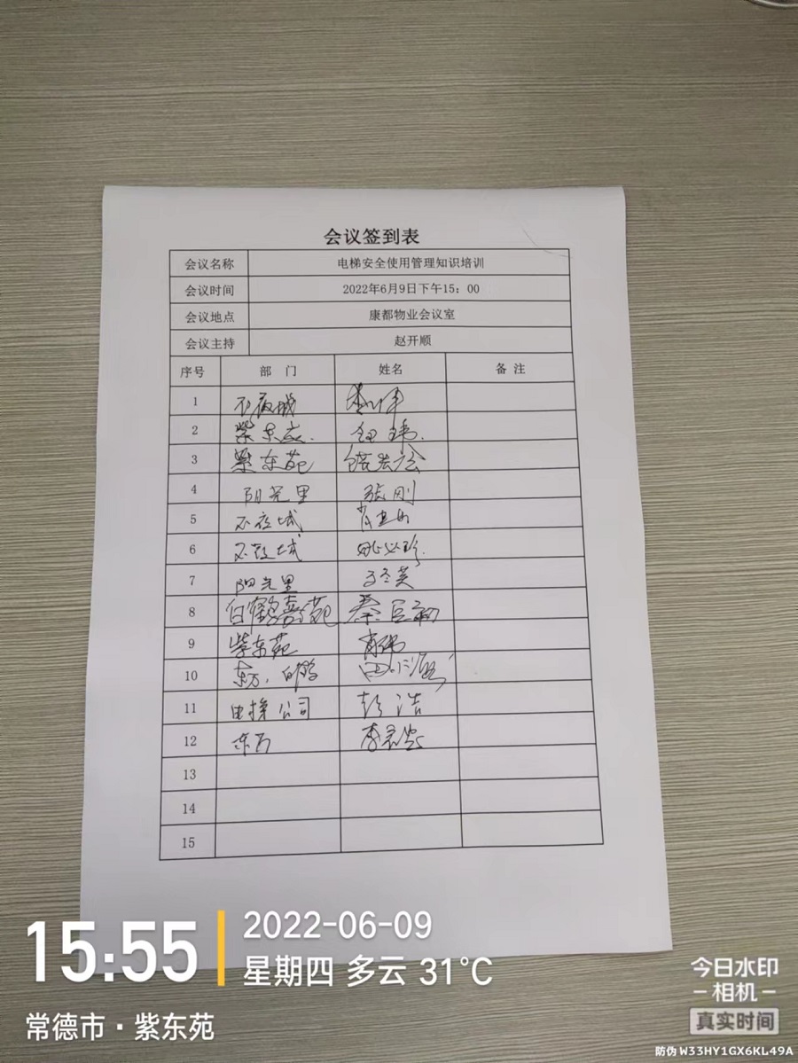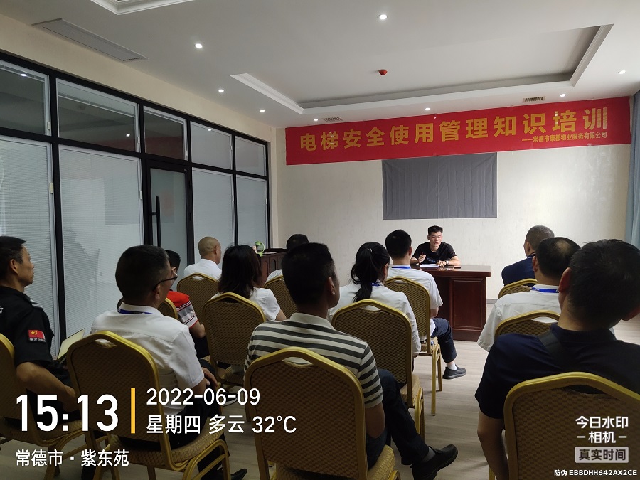 2022年6月9日下午三點,公司組織各項目負(fù)責(zé)人及項目相關(guān)技術(shù)人員在紫東苑小區(qū)參加電梯安全使用管理知識培訓(xùn)。